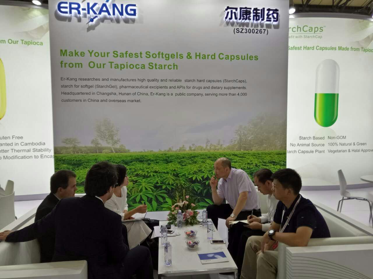在展会上,淀粉胶囊因其天然健康的优势,以及高科技水准,在展会上一亮相,就吸引了大批客户前来展台咨询。“淀粉胶囊真的是纯植物的吗?”“淀粉胶囊服用了有没有副作用?”“和其它胶囊相比,淀粉胶囊有什么优势?”······面对接踵而来的问题,工作人员都一一耐心地为客户解答。